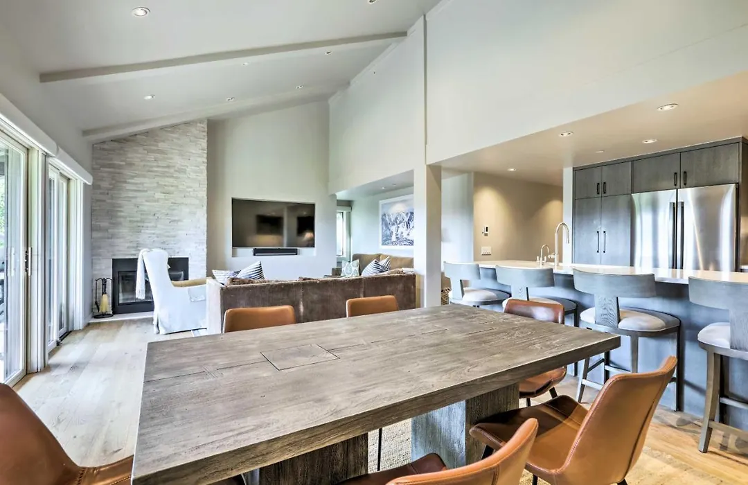 A fully furnished kitchen comes with a microwave oven, a refrigerator, and kitchenware. Tasteful Snowmass Escape Less Than 1 Mi To Slopes! is extremely close to Assay Hill cable car station.